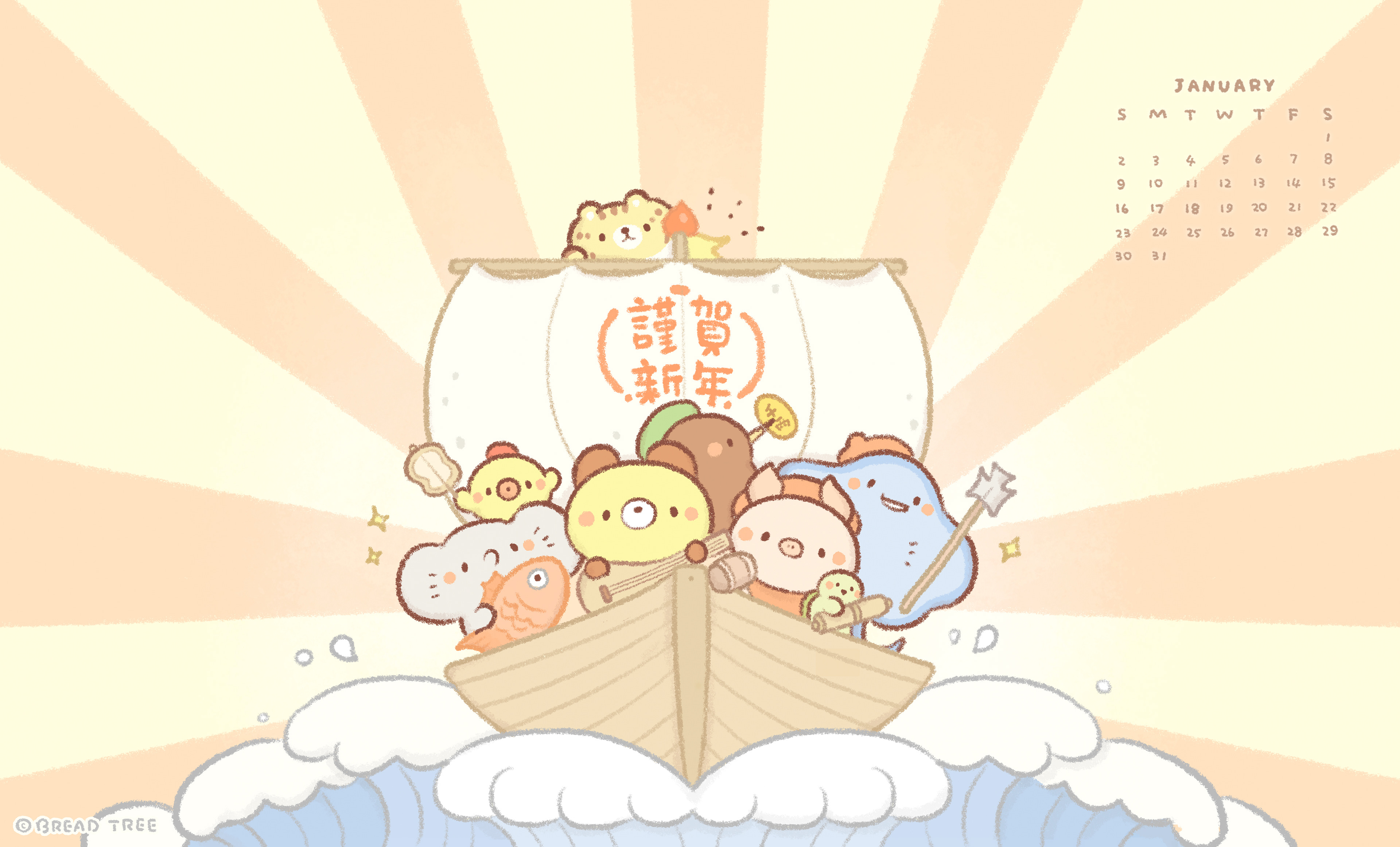 加麵包樹LINE好友後對話框輸入「 #一月桌布 」就會收到了!!